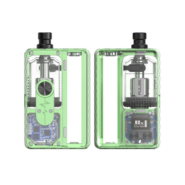 Here is the Pulse AIO V2 Pack, available in new colors, a perfect blend of elegance and durability, compatible with all Boro tanks.Single coil deck.Works with 18650 battery (not included).Power adjustable from 5 to 80 watts.Pulse RBA Boro tank with a capacity of 6 ml filling through the front.Airflow honeycomb adjustable with 4 pin : 1.5, 2.0, 3.0, 4.0 mm.2 Drip Tip (RDL and DTL) coupled with 3 pin allow maximum customization of the draw run.Chipset IP67 PCBA Waterproof.Clear and readable 0.42" OLED display.The Pulse V2 can be switched to a standard box thanks to the included 510 adapter.