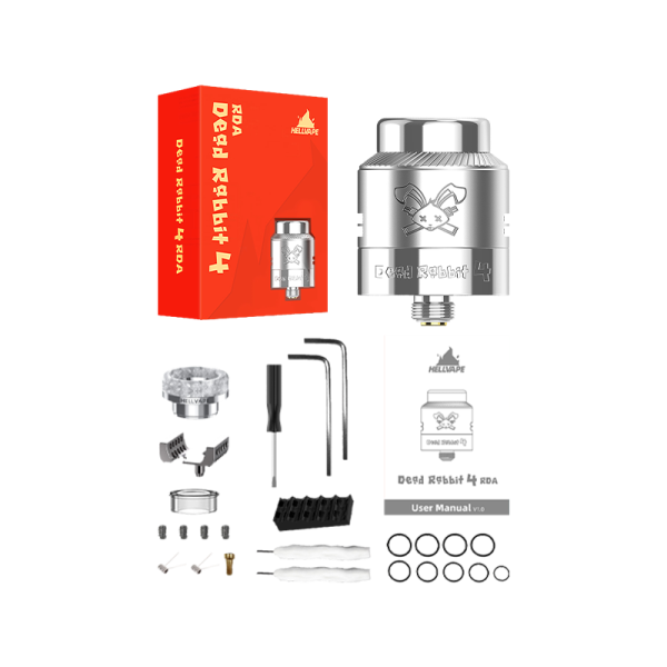 Dead Rabbit 4 RDA : more compact than ever, delivering flavor at a whole new level.Single/dual coil deck postless, allowing easy installation of builds.Precise honeycomb adjustable airflow, perfect for RDL to DL vaping.Bottom feed compatible thanks to the included BF pin.Excellent flavor rendering.24mm diameter making it flush with a large part of existing mods.Single coil adapter for enhanced flavor810 wide bore drip tips : Metal and AG+ included Recommended retail price 35.90€