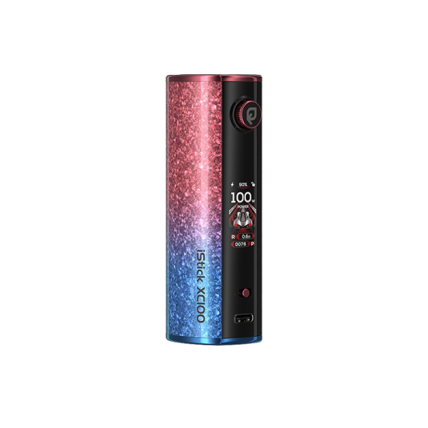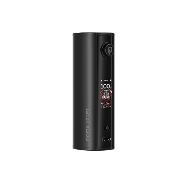 Discover the iStick XC100 by Eleaf: power, long battery life, and a compact design all in one device.Works with a single 21700/18650 battery (not included).Upgradable, reliable, and high-performance Smart Chip Inside 2.0 chipset.Adjustable power output from 5 to 100 watts.Two operating modes: Power and RTA (adjustable voltage from 0.5V to 9V).Multi-function button with built-in adjustment dial.Clear and easy-to-read 1.05" TFT screen.4 selectable animated themes: Racer, Bubbles, Pulse, and Aurora.Locking switch to prevent accidental button presses.Multiple safety protections for 100% safe vaping.Recommended retail price 33.90€
